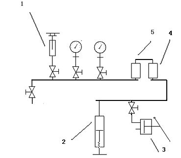 在原液体活塞的基础上,在管道中增加过滤器4 ,除水瓶5,手压气泵3.经过简单改造就得到气体活塞式压力计。
